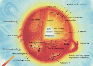 8. El sol está compuesto de 73.46% de hidrógeno y 24.85% de helio, el resto son elementos pesados.