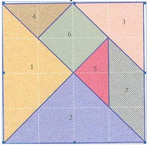 Es un puzzle de 7 piezas que al colocarlas adecuadamente forman el cuadrado. Sabiendo esto, podemos: